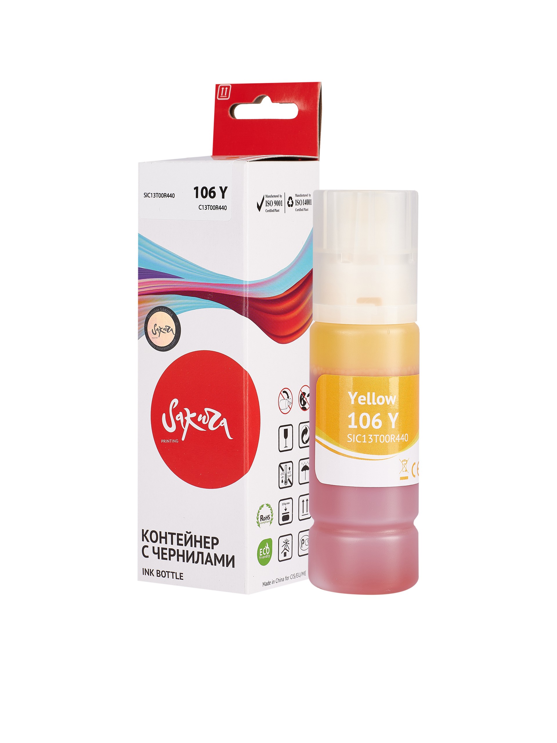 Характеристики Контейнер с чернилами Sakura C13T00R440 (106 Y/006) для Epson, желтый, 5000 к., 70 мл.