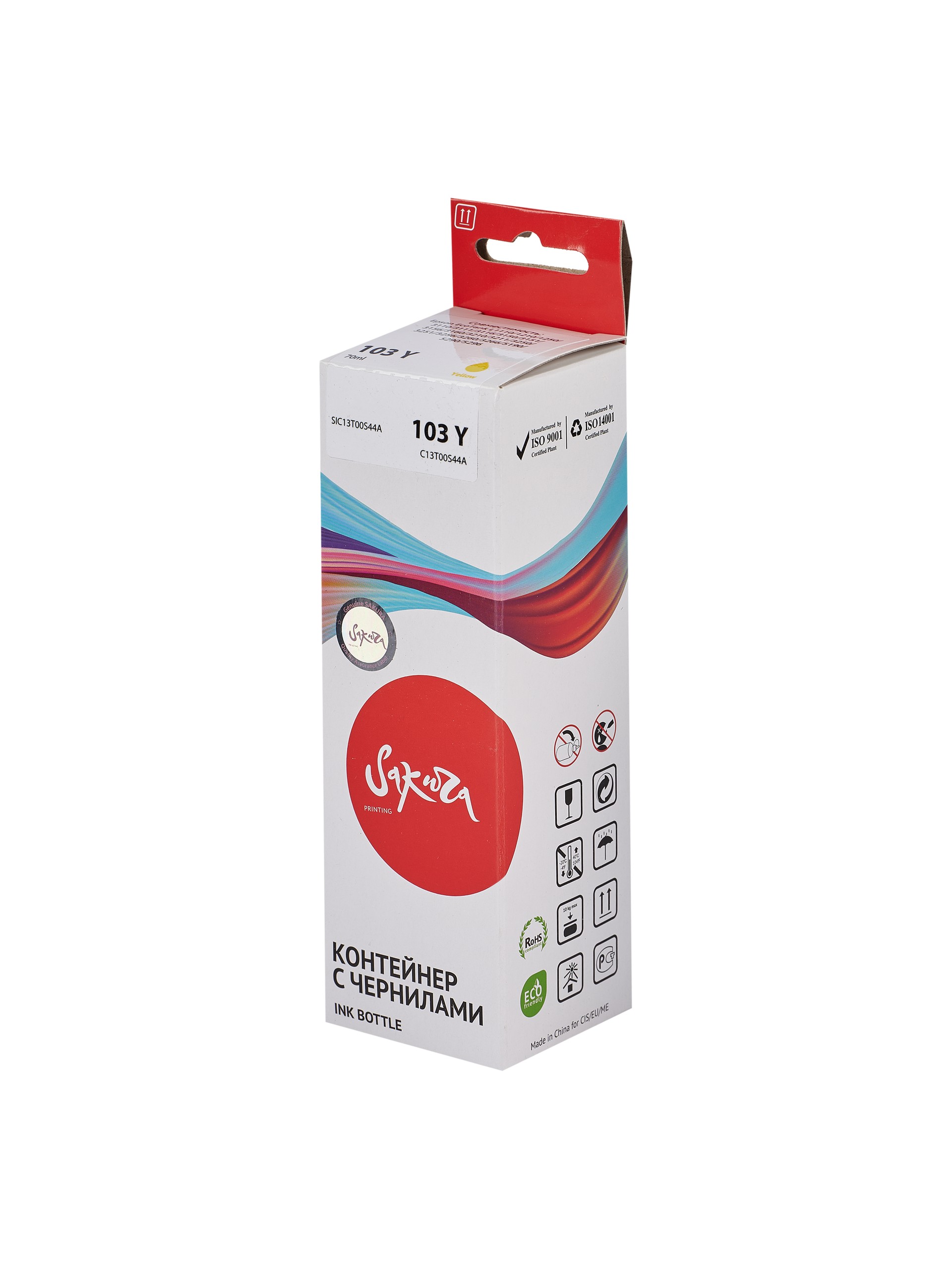 Контейнер с чернилами Sakura C13T00S44A (103 Y) для Epson, водорастворимый тип, желтый, 7500 к., 70 мл.